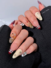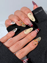 Ornament Waltz captures the sparkle and warmth of the Nutcracker’s Christmas Eve celebration. Deep red tartan French tips echo classic holiday fabrics, while the gemstones reflect tree ornaments under stage lights.