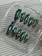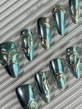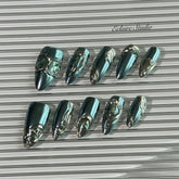 Bold yet ethereal, Ciel captures the depth of a twilight sky with a shimmering teal base, sculpted Metallic accents, and iridescent inlays that shift with every glance. This set blends modern edge with celestial elegance, like light reflecting off stormy clouds.