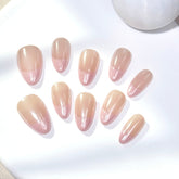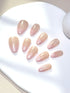 Jenny, a timeless take on the classic French manicure. Featuring a soft pink French tip blended seamlessly with a sheer nude base, this set is elevated with a delicate pearl glaze for a subtle, luminous sheen. The short almond shape offers a natural yet refined look, perfect for everyday wear or special occasions.