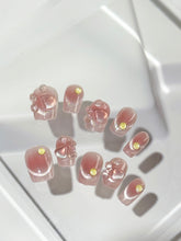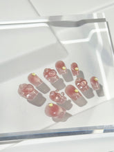Berry Paws is a sweet and playful tribute to all things cute and cozy. This short square set features a soft blush cat-eye base with a dreamy sheen that shifts in the light. Adorned with 3D paw prints, bubbly accents, and pearl-like details, every nail feels like a gentle pat from your favorite furry friend.