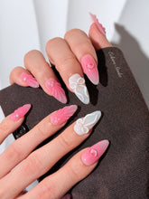 A luscious, high-shine masterpiece for the modern romantic. This set features a translucent, strawberry-jelly base adorned with hand-sculpted 3D "sugar" bows and glass-like hearts. Finished with delicate pearl accents, it captures a sweet, nostalgic essence.