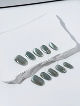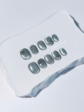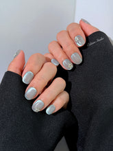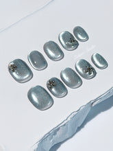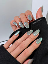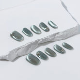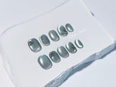 Frost features an ash-blue cat-eye base that shifts softly with the light, finished with delicate crystal snowflake accents. It’s subtle, elegant, and serene — winter in its calmest moment.