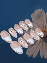 Crisp white tips reflect the purity of spring, while the delicate white petals and gold centers echo the simple joy of a blooming field. Gold metallic accents add a decorative, polished touch, completing a look that feels both classic and elevated.