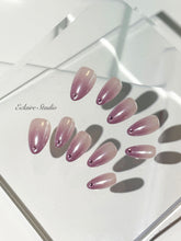 Featuring a glazed, high-shine finish and a dreamy purple ombré fade, Dew captures the serene beauty of morning light on petals. Each nail is adorned with a single, dainty gem at the tip—like a drop of dew resting gently at dawn.